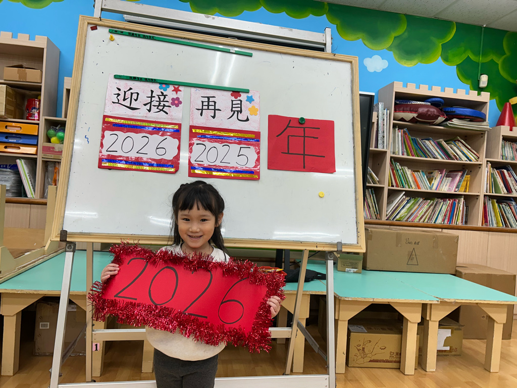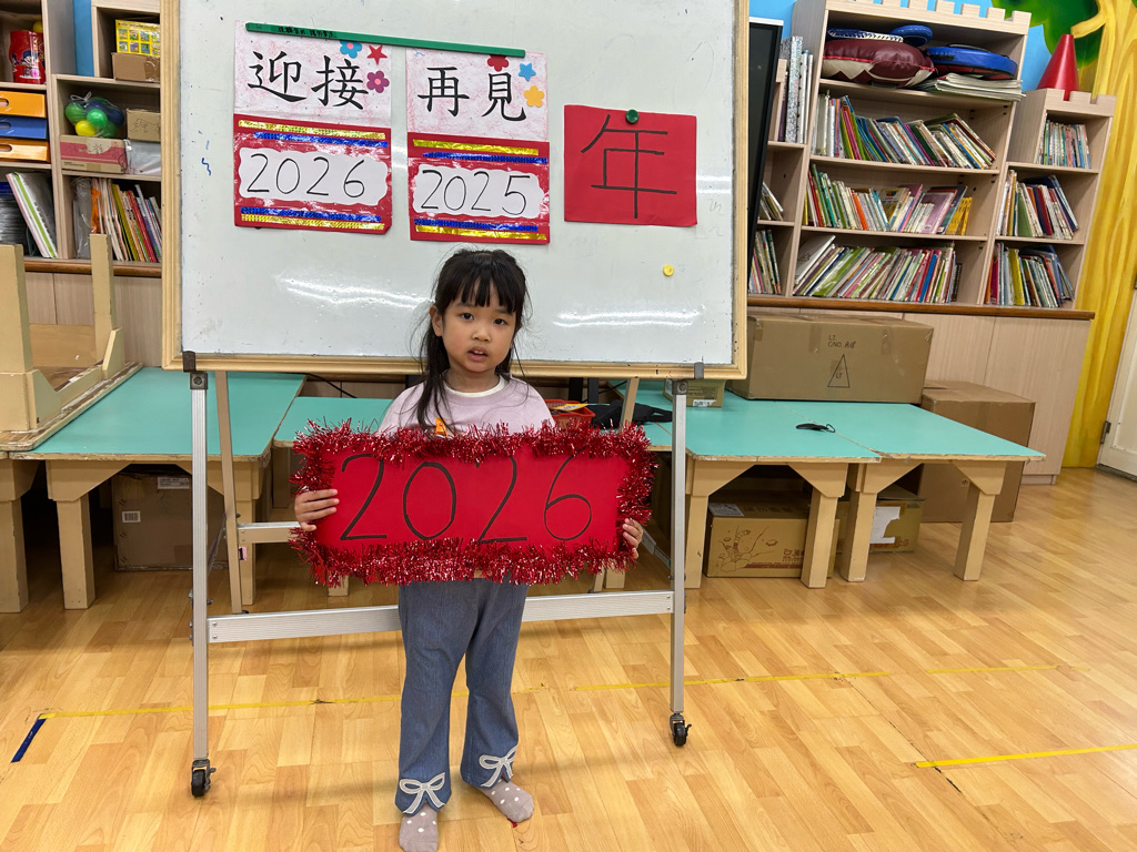 一年快要結束了,我們要跟今年說再見,也要準備迎接新的一年。老師帶領孩子一起倒數 👉「10、9、8、7、6、5、4、3、2、1 —— 新年快樂🎉」。