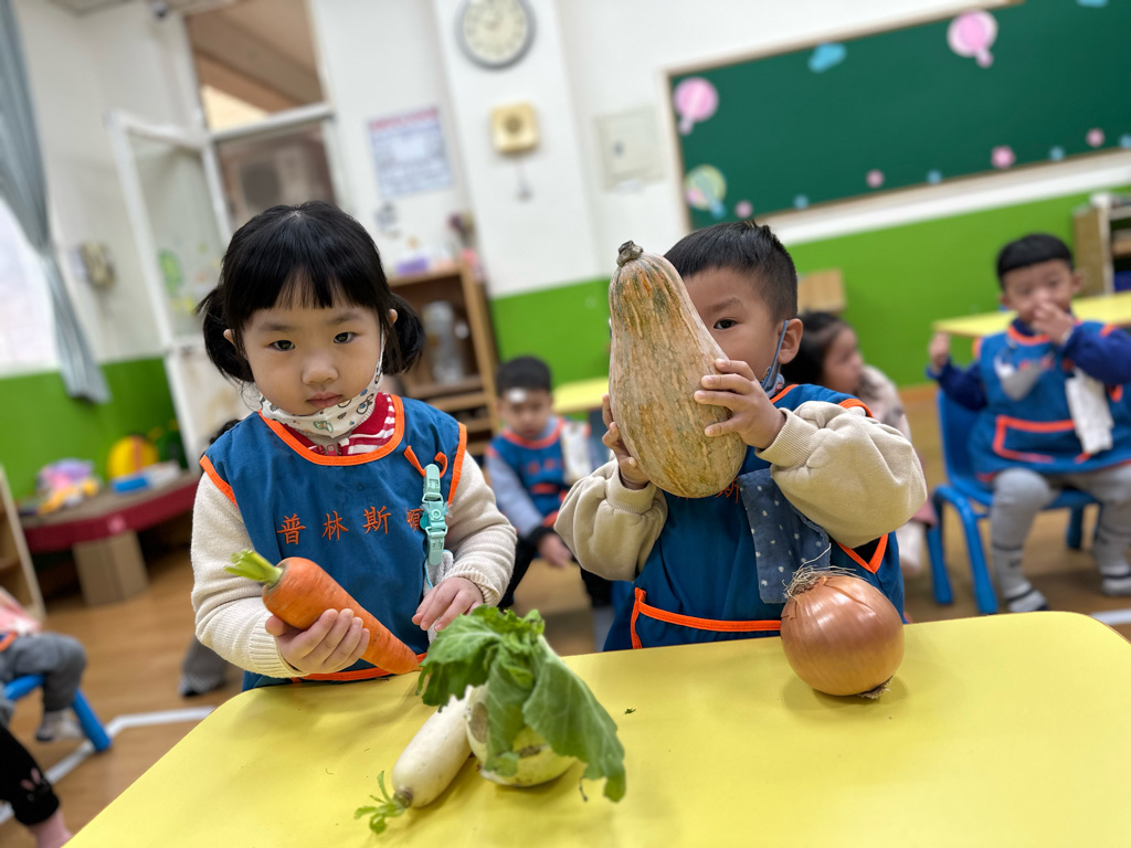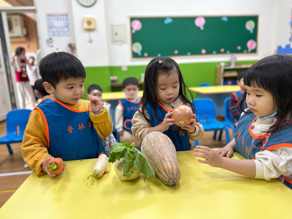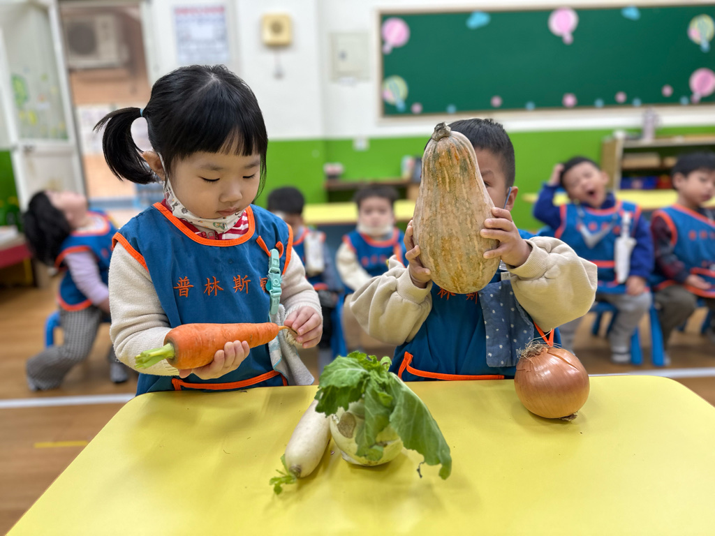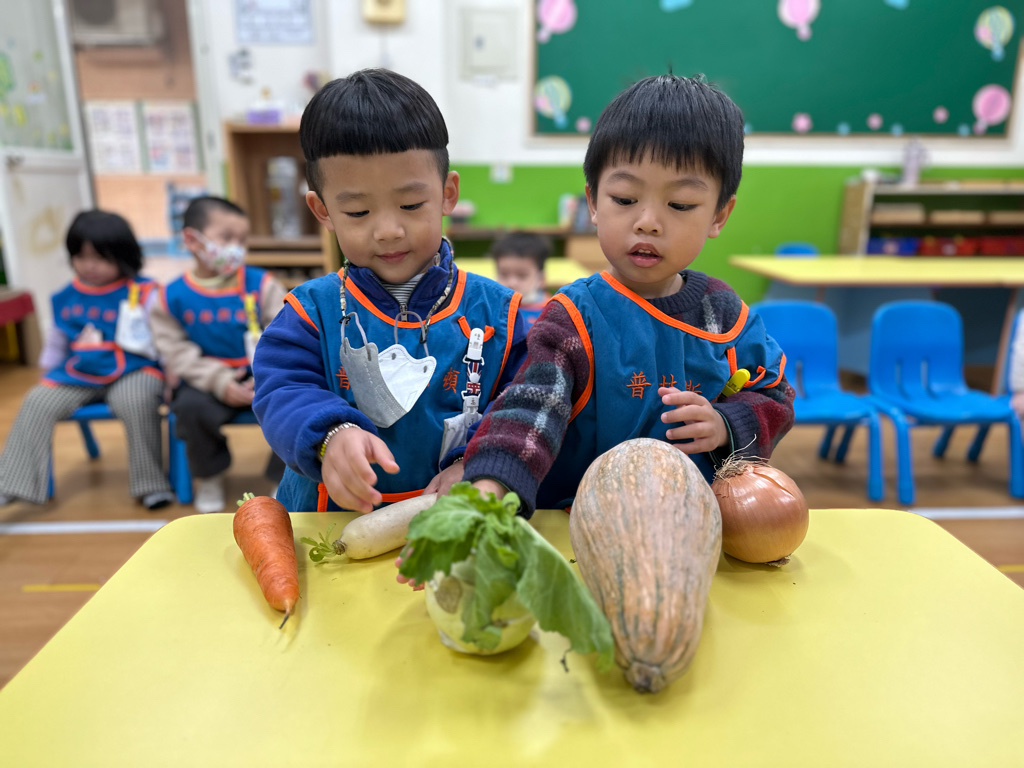課程以繪本、蔬菜與遊戲操作激發幼兒動機,孩子在排序、觀察、種植與五感探索中展現好奇心與合作精神,透過觀察、比較與語言表達逐步建立認知概念。